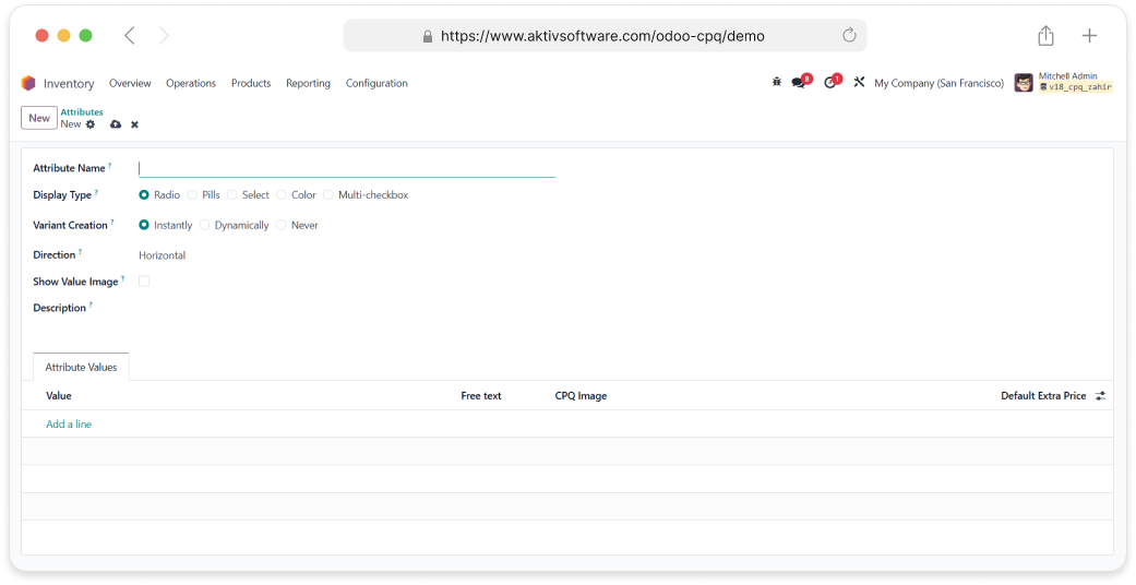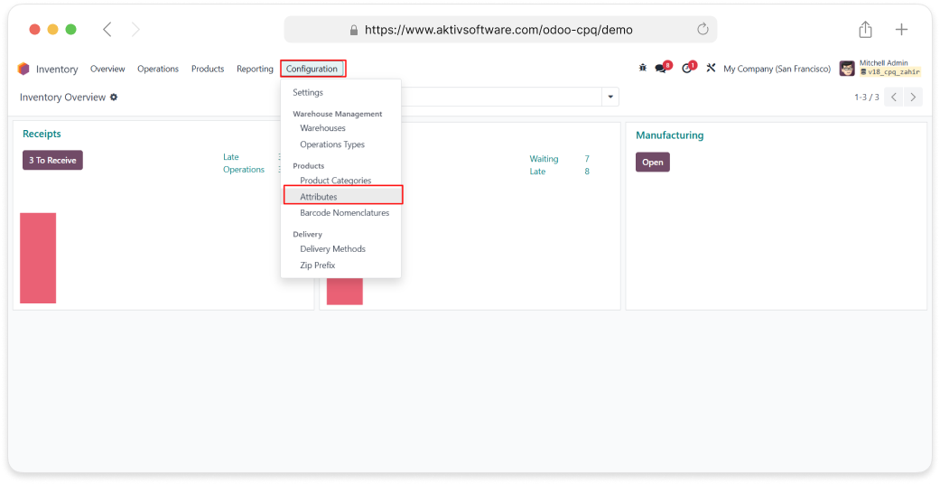 • In the Inventory module, you must select the “Configurable” option to create a configurable