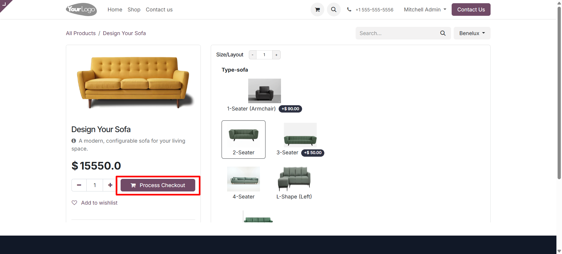 • Once the product is configured, the user can proceed directly to checkout and payment.